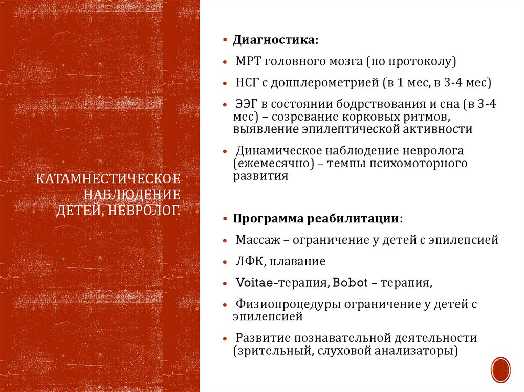 • Динамическое наблюдение невролога