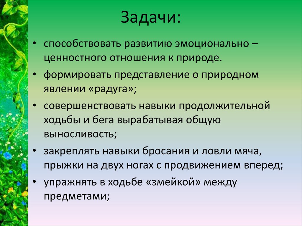 Задачи:• способствовать развитию эмоционально –