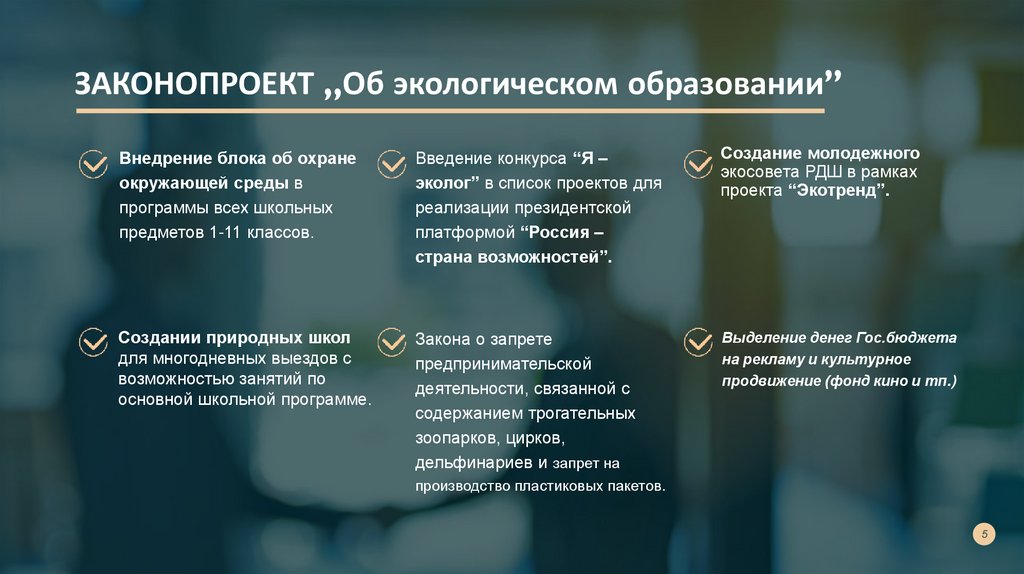 ЗАКОНОПРОЕКТ „Об экологическом образовании”Внедрение блока об охране