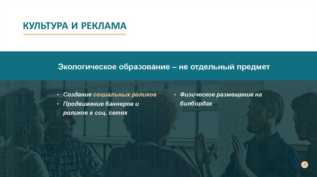 КУЛЬТУРА И РЕКЛАМАЭкологическое образование – не отдельный предмет