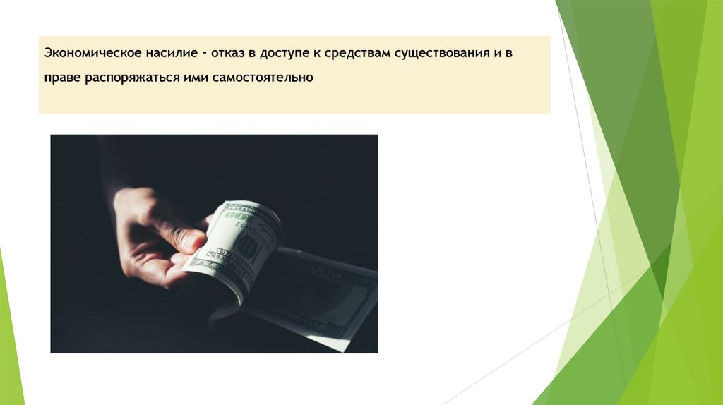 Экономическое насилие – отказ в доступе к средствам существования и вправе распоряжаться ими самостоятельно