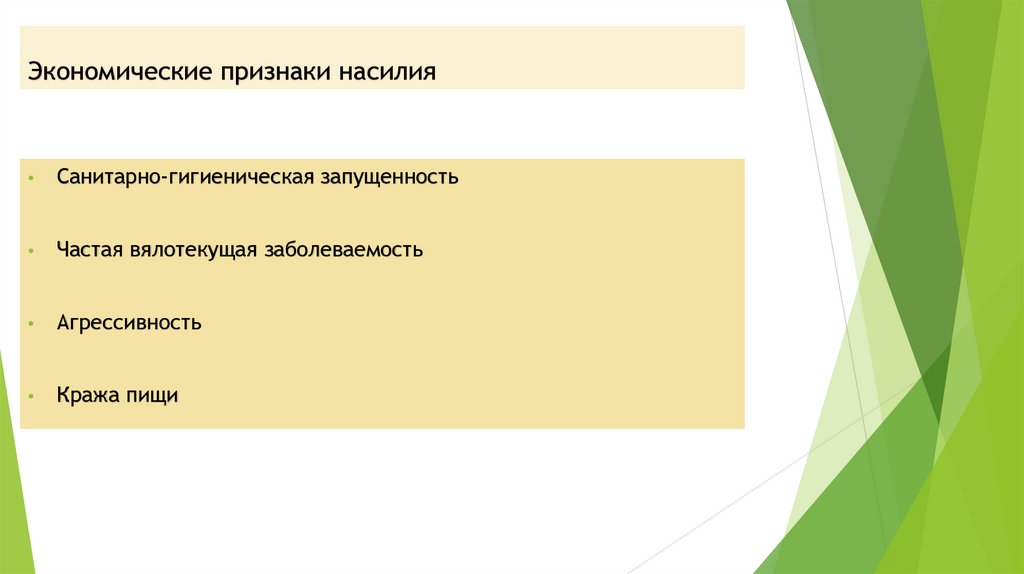 Экономические признаки насилияСанитарно-гигиеническая запущенность