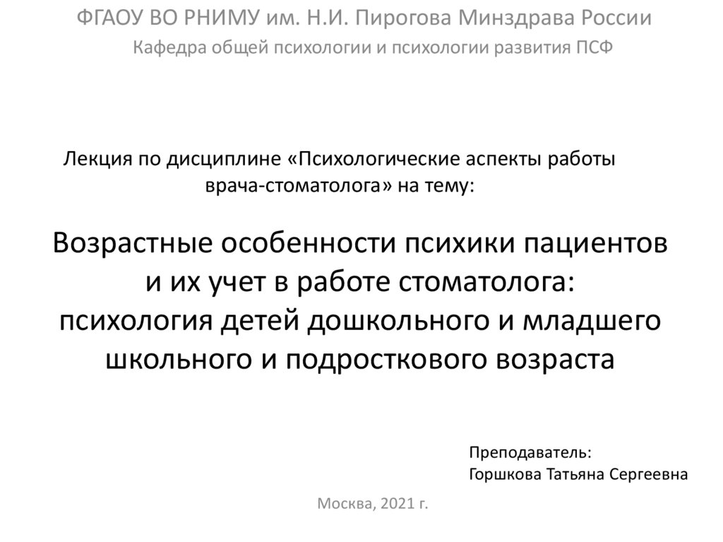 ФГАОУ ВО РНИМУ им. Н.И. Пирогова Минздрава РоссииКафедра общей психологии и психологии развития ПСФ