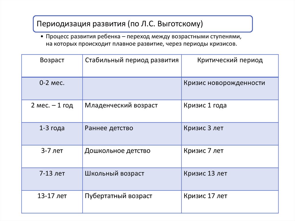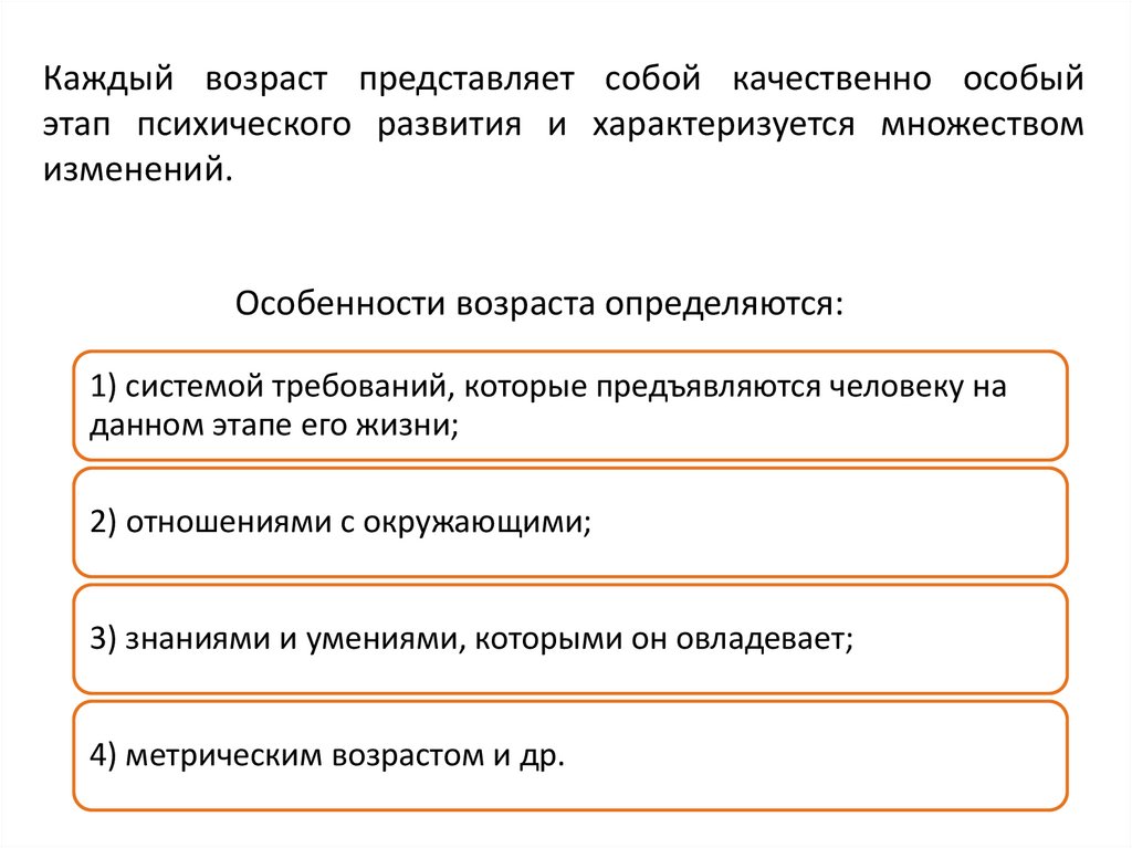 Каждый возраст представляет собой качественно особыйэтап психического развития и характеризуется множеством