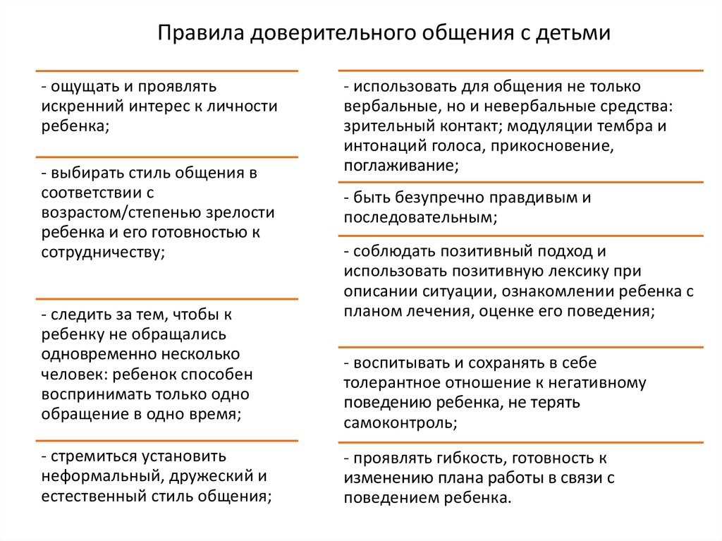 • Следует проявлять особую психологическую чуткость к ребенку и его родителям.