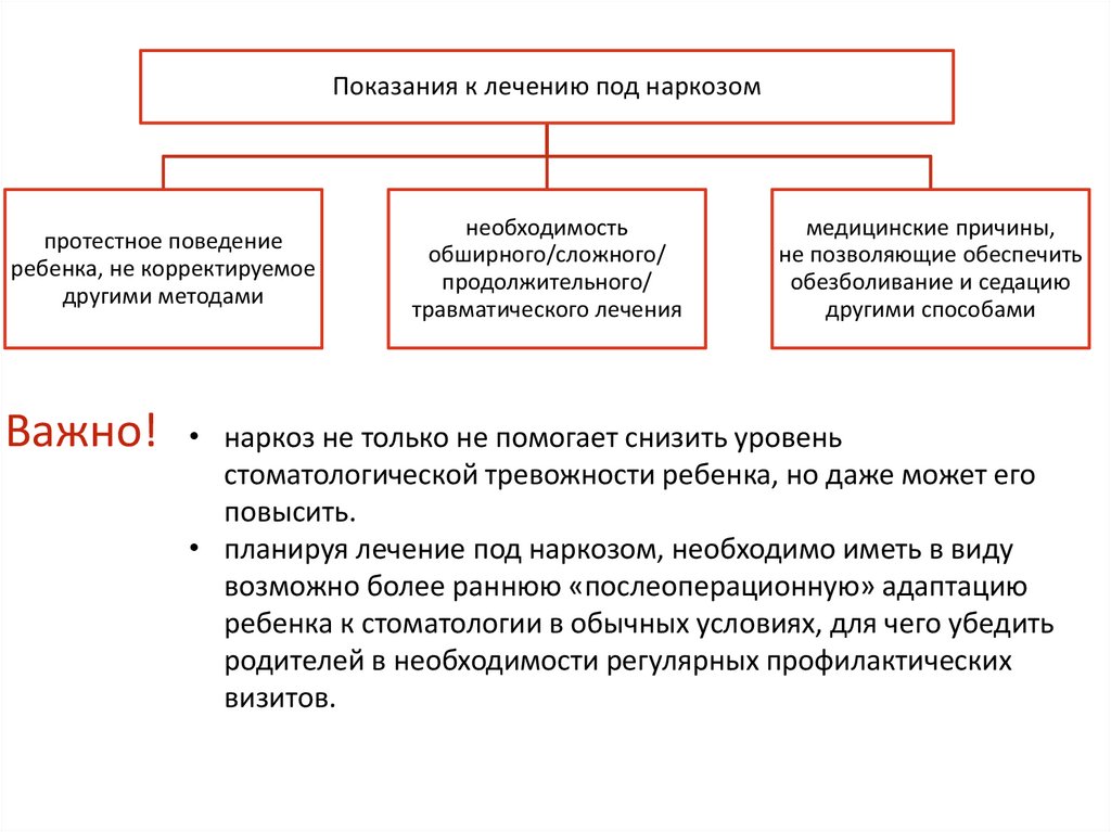 • планируя лечение под наркозом, необходимо иметь в виду