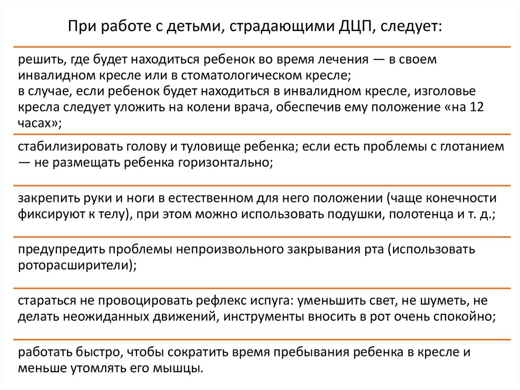 Особенности ведения приема детейс детским церебральным параличом (ДЦП)
