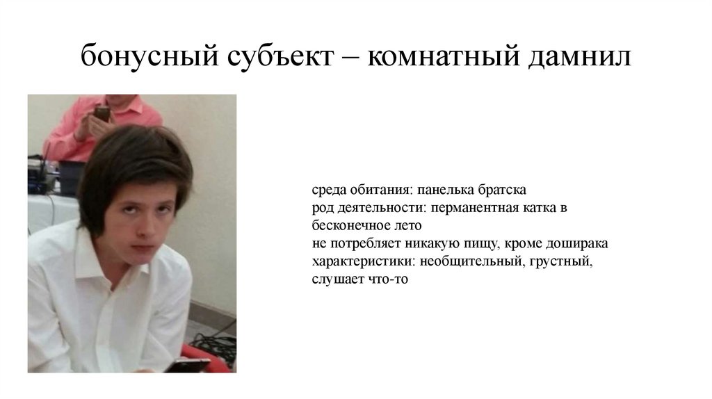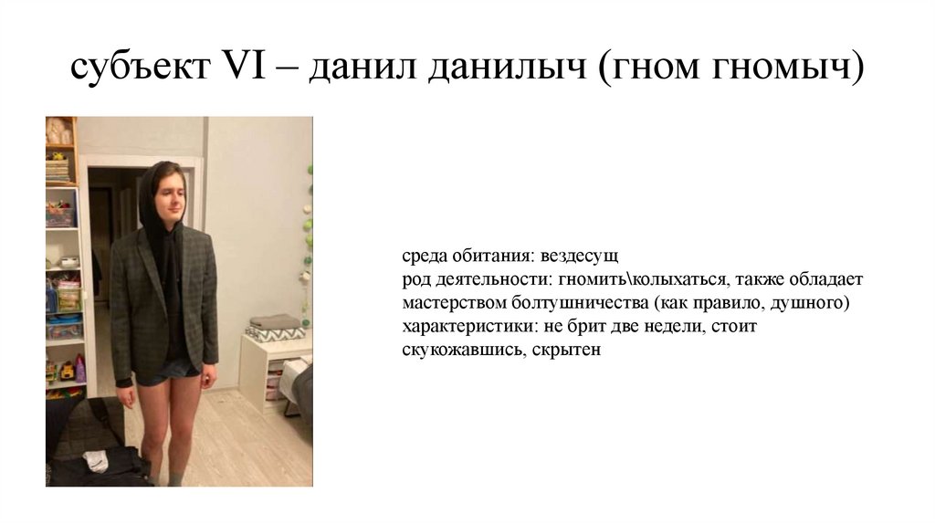 субъект VI – данил данилыч (гном гномыч)среда обитания: вездесущ