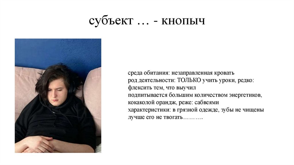 субъект … - кнопычсреда обитания: незаправленная кровать
