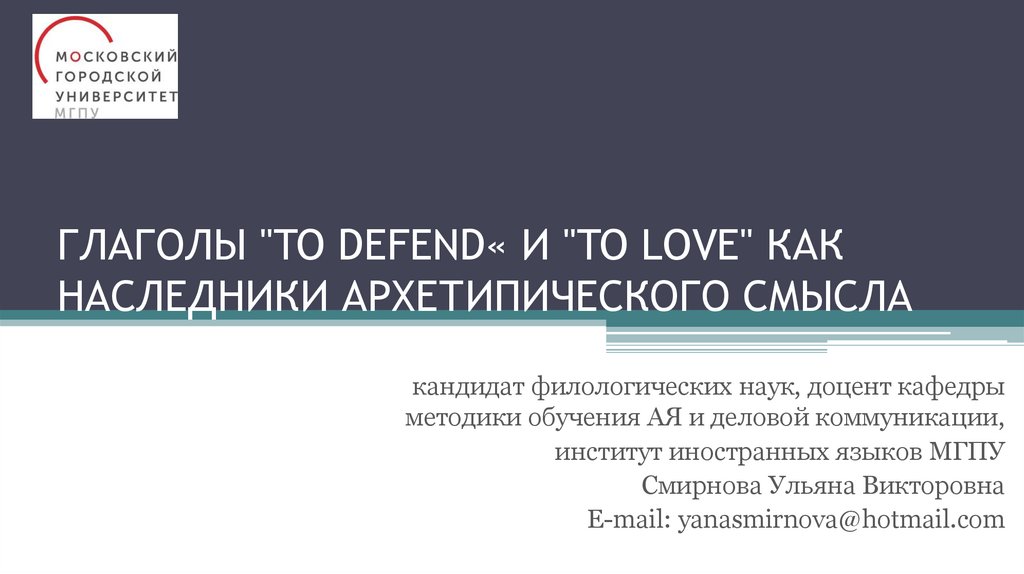 ГЛАГОЛЫ "TO DEFEND« И "TO LOVE" КАКНАСЛЕДНИКИ АРХЕТИПИЧЕСКОГО СМЫСЛА