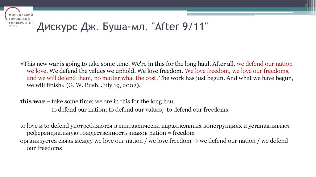 3Дискурс Дж. Буша-мл. "After 9/11"