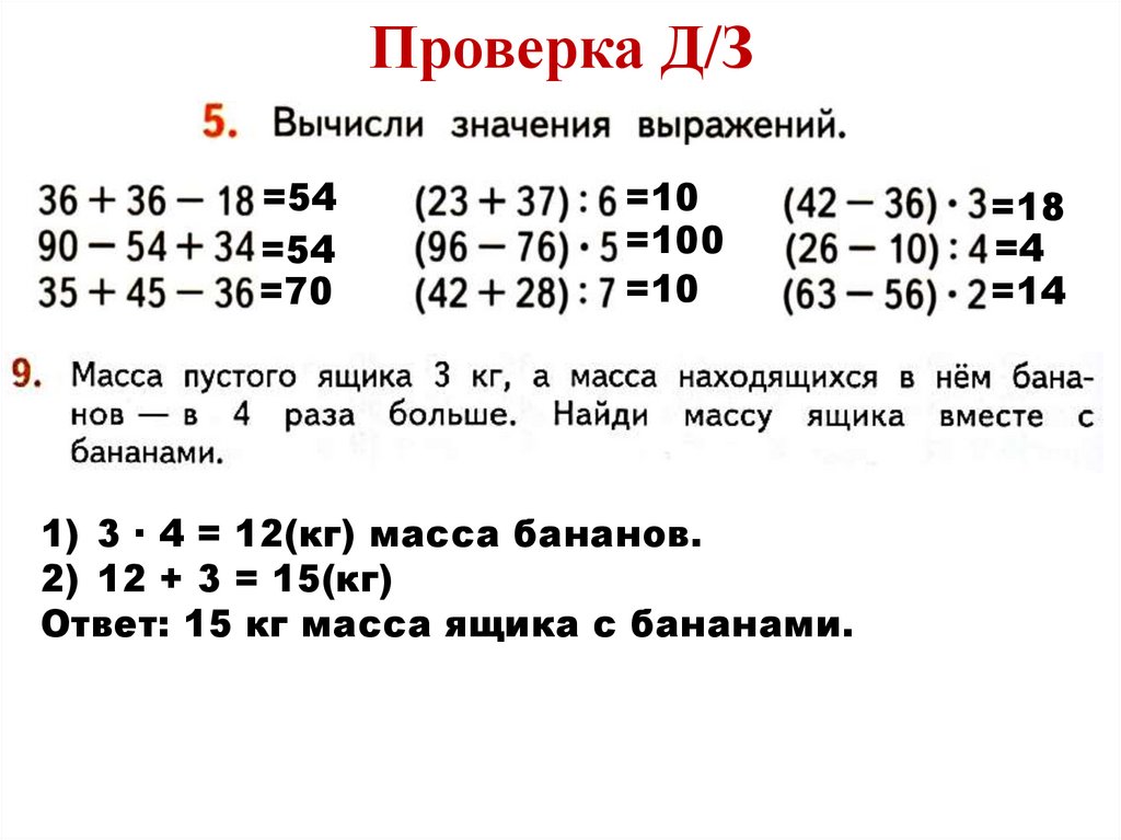 1) 3 ∙ 4 = 12(кг) масса бананов.