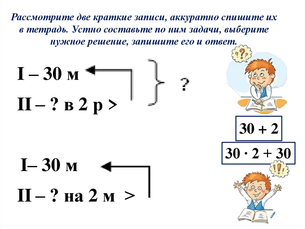Рассмотрите две краткие записи, аккуратно спишите ихв тетрадь. Устно составьте по ним задачи, выберите