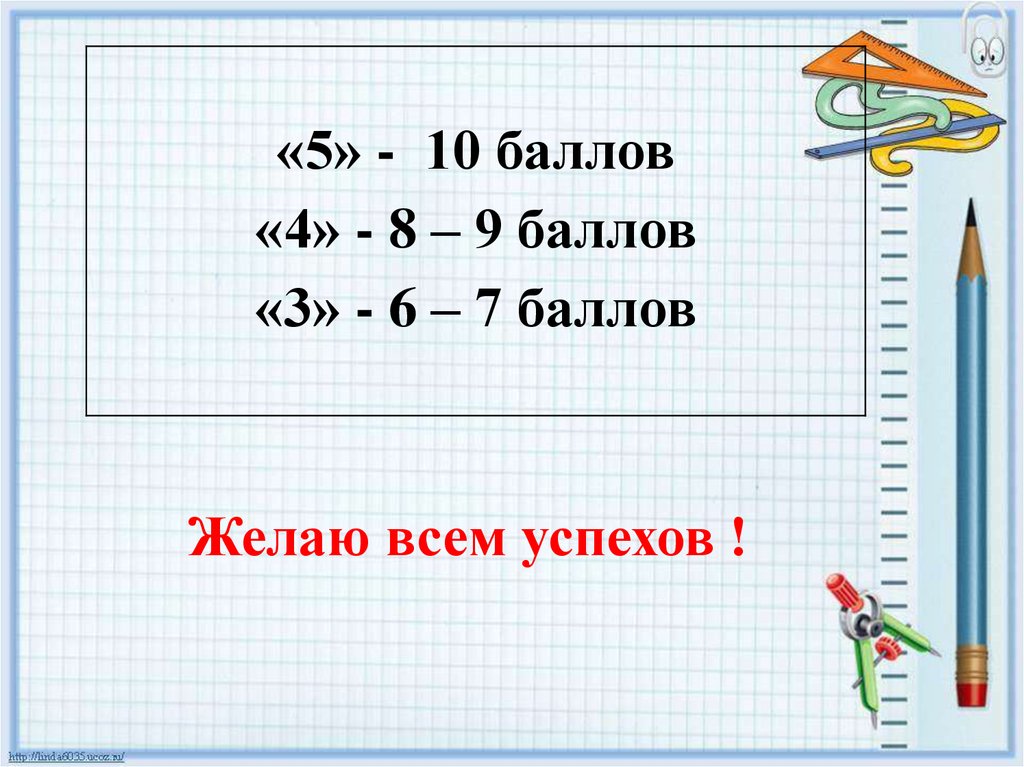 «5» - 10 баллов«4» - 8 – 9 баллов