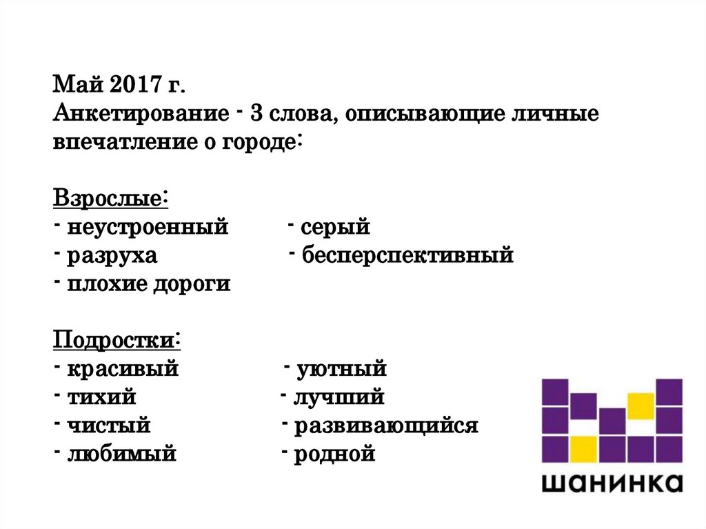 Май 2017 г.Анкетирование - 3 слова, описывающие личные
