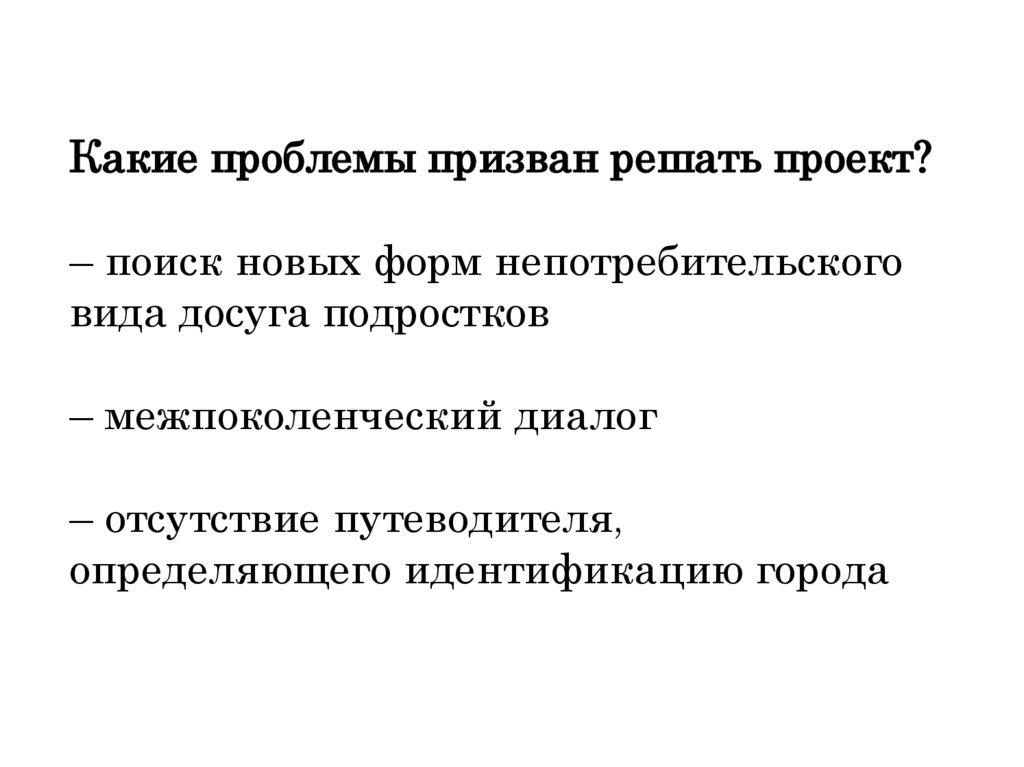 Какие проблемы призван решать проект?– поиск новых форм непотребительского