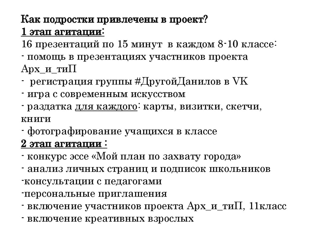 Как подростки привлечены в проект?1 этап агитации: