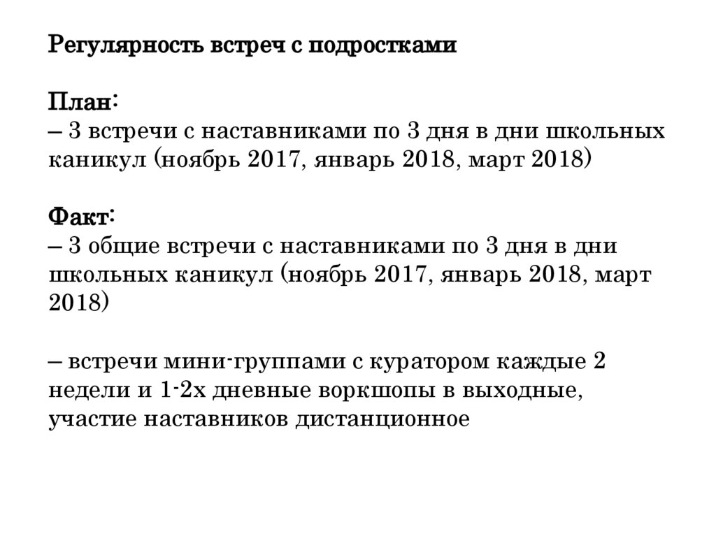 Регулярность встреч с подросткамиПлан: