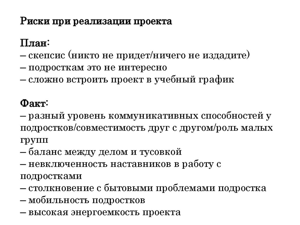 Риски при реализации проектаПлан: