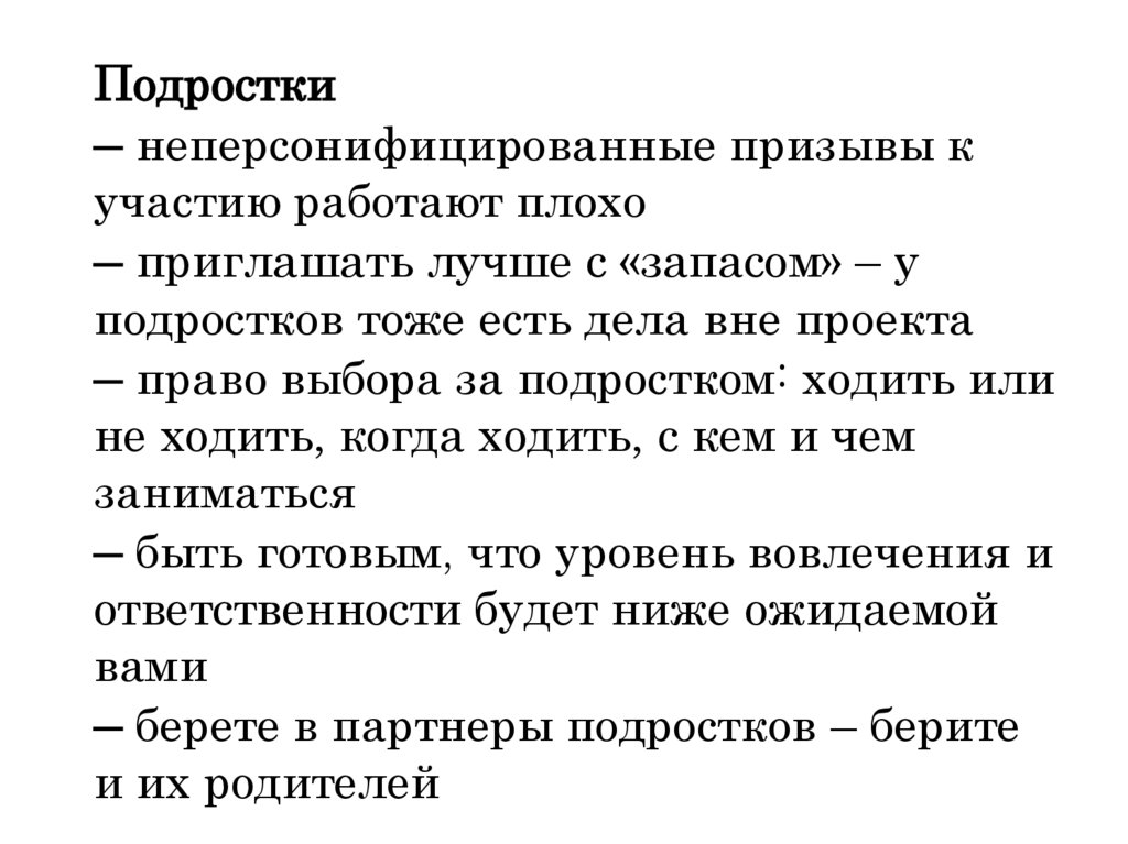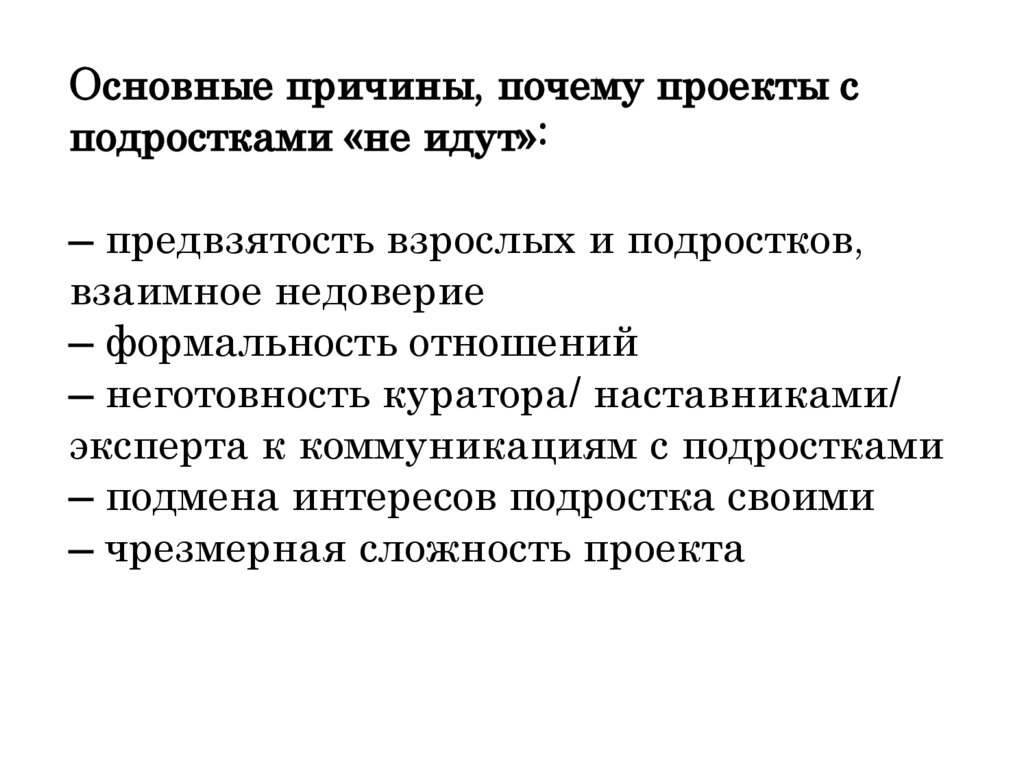 Основные причины, почему проекты сподростками «не идут»: