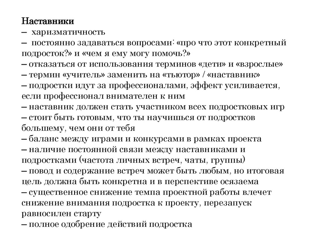 – наставник должен стать участником всех подростковых игр