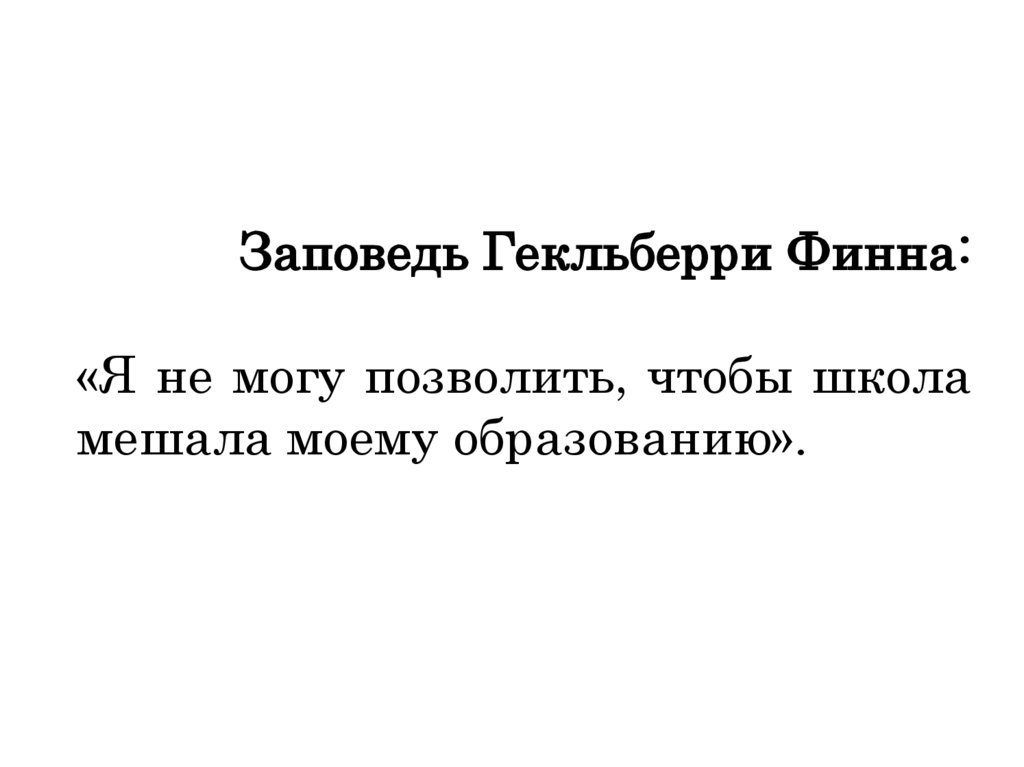 Заповедь Гекльберри Финна:«Я не могу позволить, чтобы школа