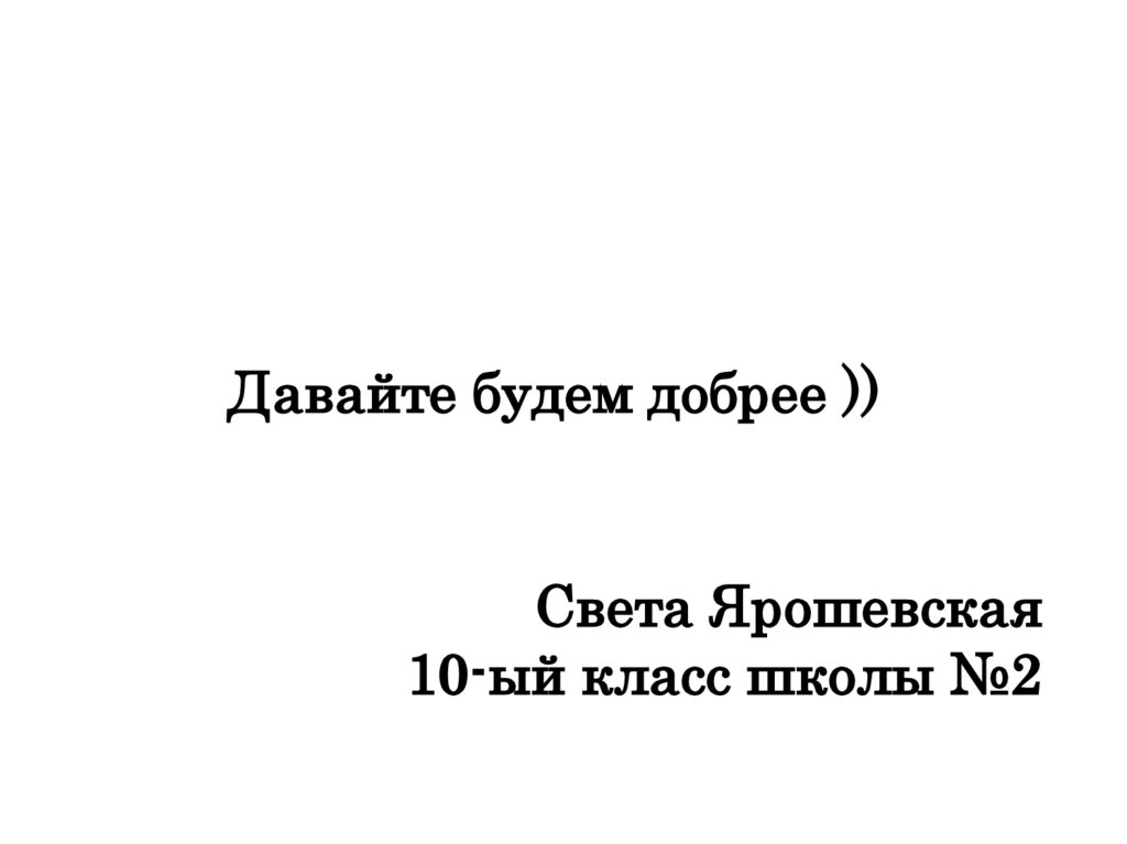 Давайте будем добрее ))Света Ярошевская