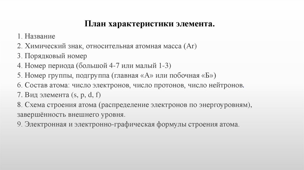 План характеристики элемента.1. Название