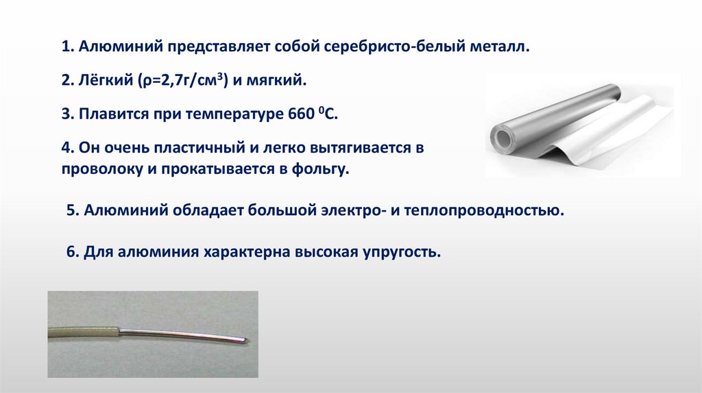 5. Алюминий обладает большой электро- и теплопроводностью.