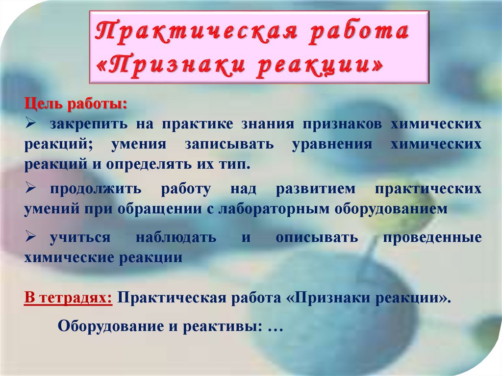 Практическая работа«Признаки реакции»