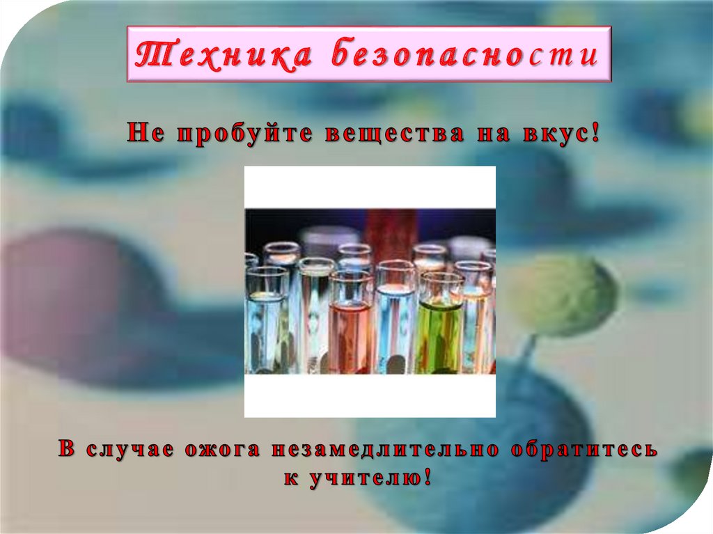 закрепить на практике знания признаков химических