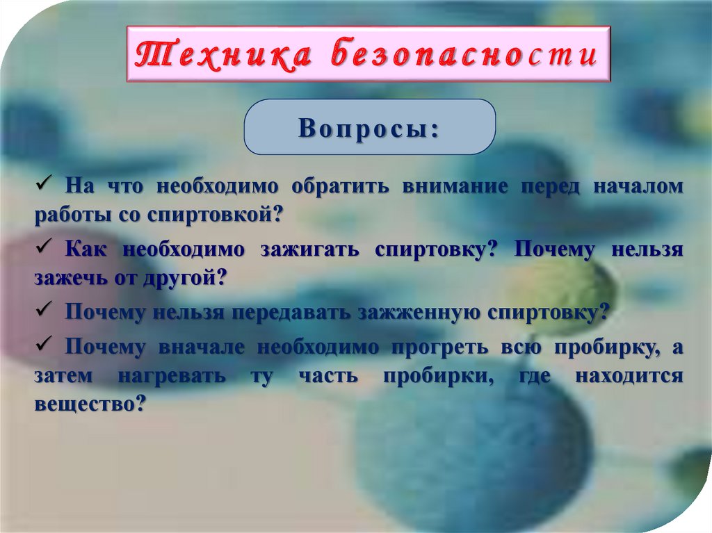 работы со спиртовкой?