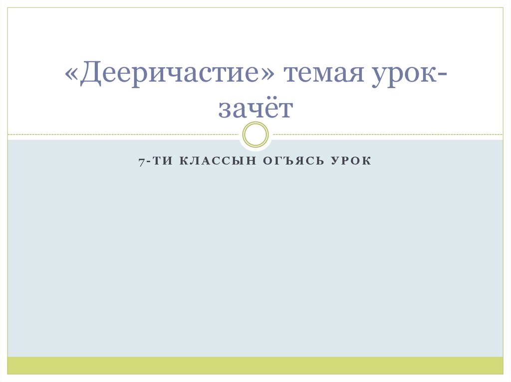 «Дееричастие» темая урокзачёт7-ТИ КЛАССЫН ОГЪЯСЬ УРОК