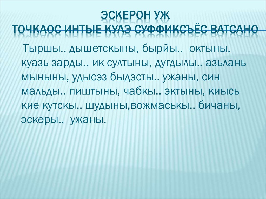 ЭСКЕРОН УЖТОЧКАОС ИНТЫЕ КУЛЭ СУФФИКСЪЁС ВАТСАНО