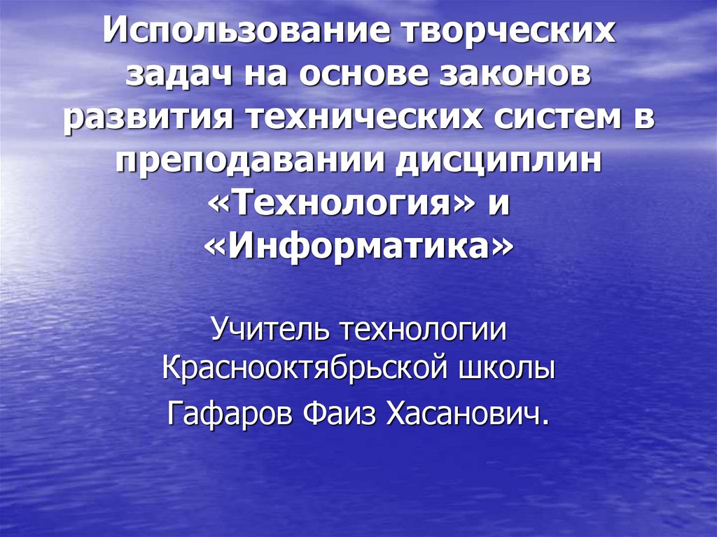 1. Использование творческих задач на основе законов развития технических систем в преподавании дисциплин «Технология» и
