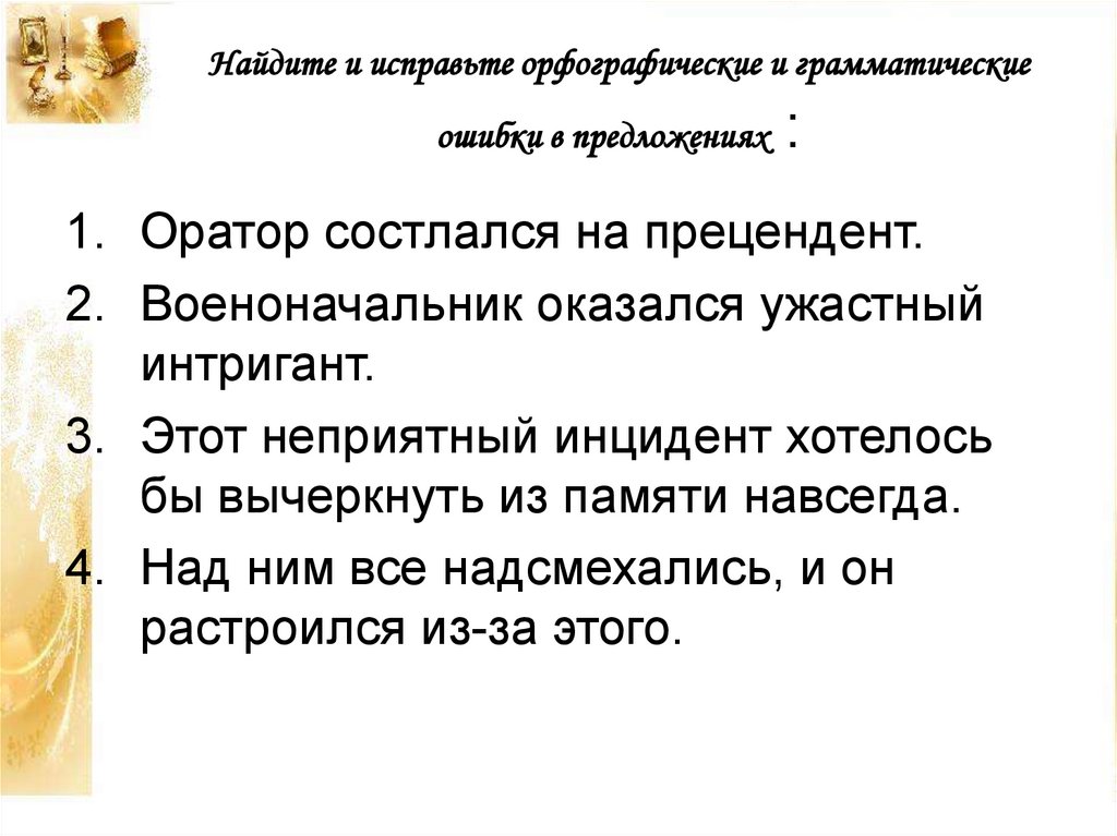 Найдите и исправьте орфографические и грамматическиеошибки в предложениях