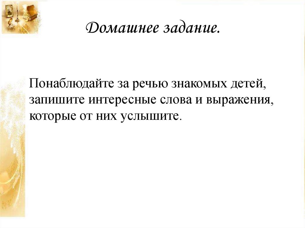 Домашнее задание.Понаблюдайте за речью знакомых детей,