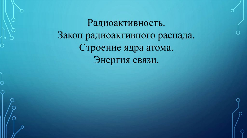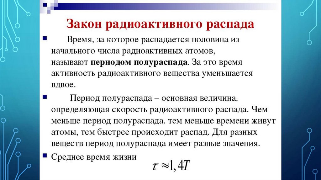 Радиоактивные излучения. Радиоактивность. Закон радиоактивного распада