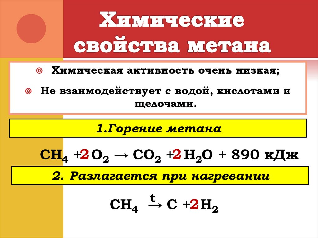 CH4 +2 O2 → CO2 +2 H2O + 890 кДж