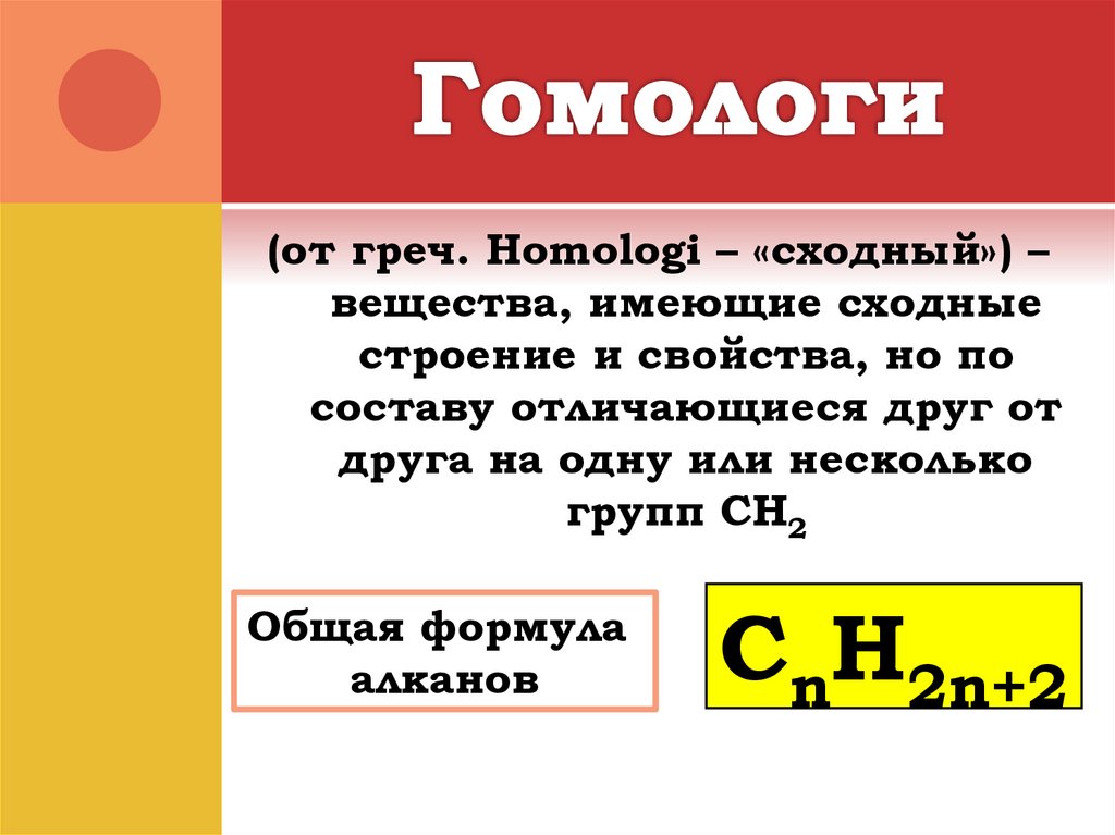 (от греч. Homologi – «сходный») –вещества, имеющие сходные
