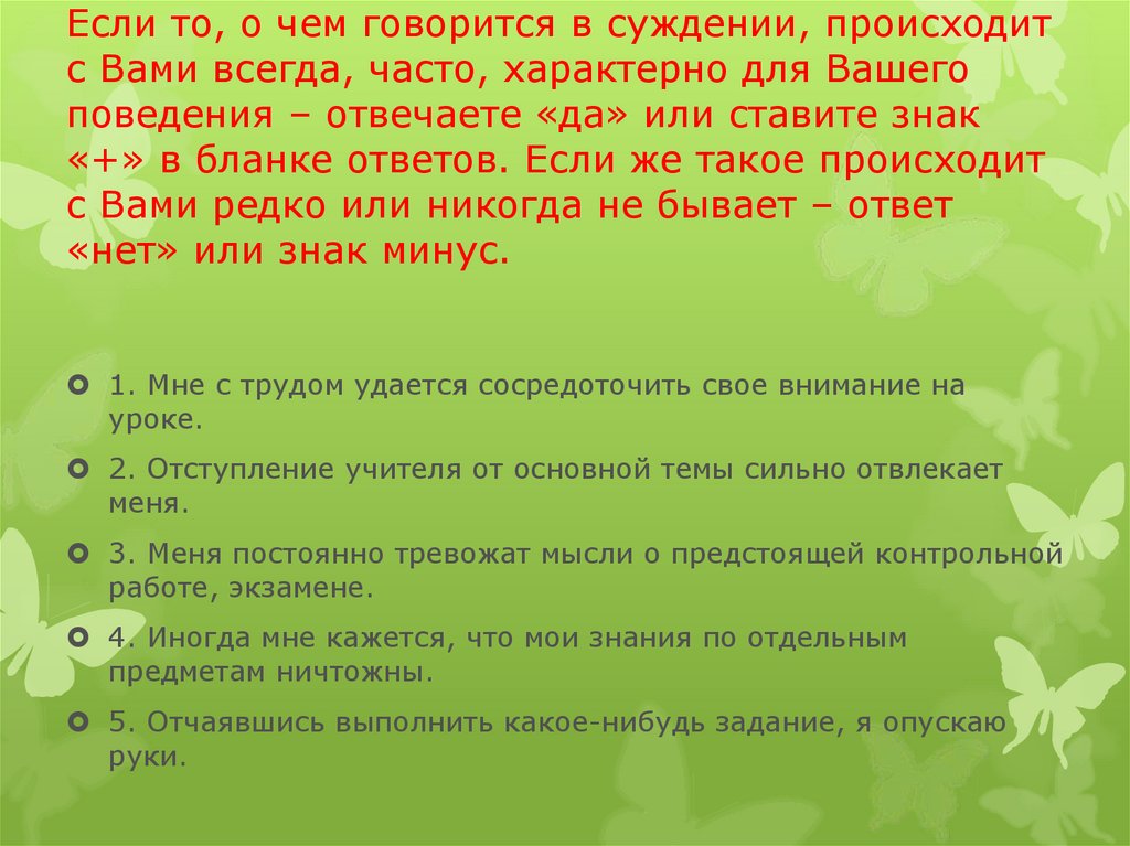 Если то, о чем говорится в суждении, происходитс Вами всегда, часто, характерно для Вашего