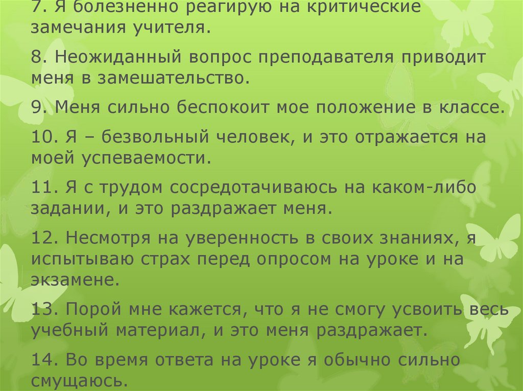 7. Я болезненно реагирую на критическиезамечания учителя.