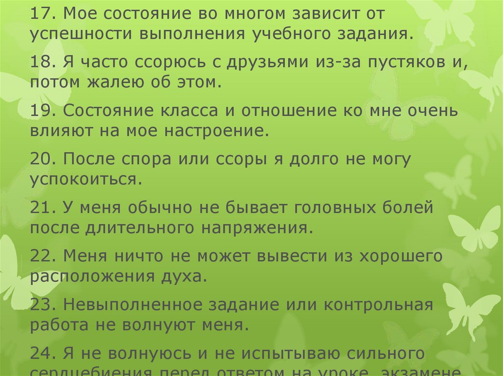 17. Мое состояние во многом зависит отуспешности выполнения учебного задания.