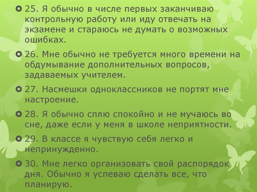 25. Я обычно в числе первых заканчиваюконтрольную работу или иду отвечать на