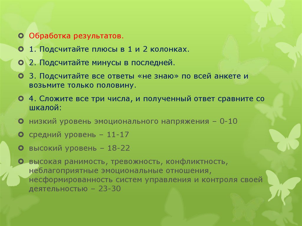3. Подсчитайте все ответы «не знаю» по всей анкете и