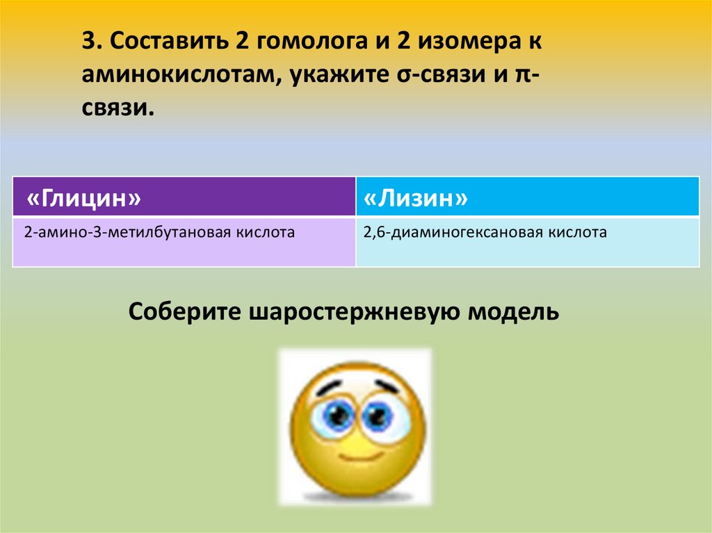 3. Составить 2 гомолога и 2 изомера каминокислотам, укажите σ-связи и πсвязи.