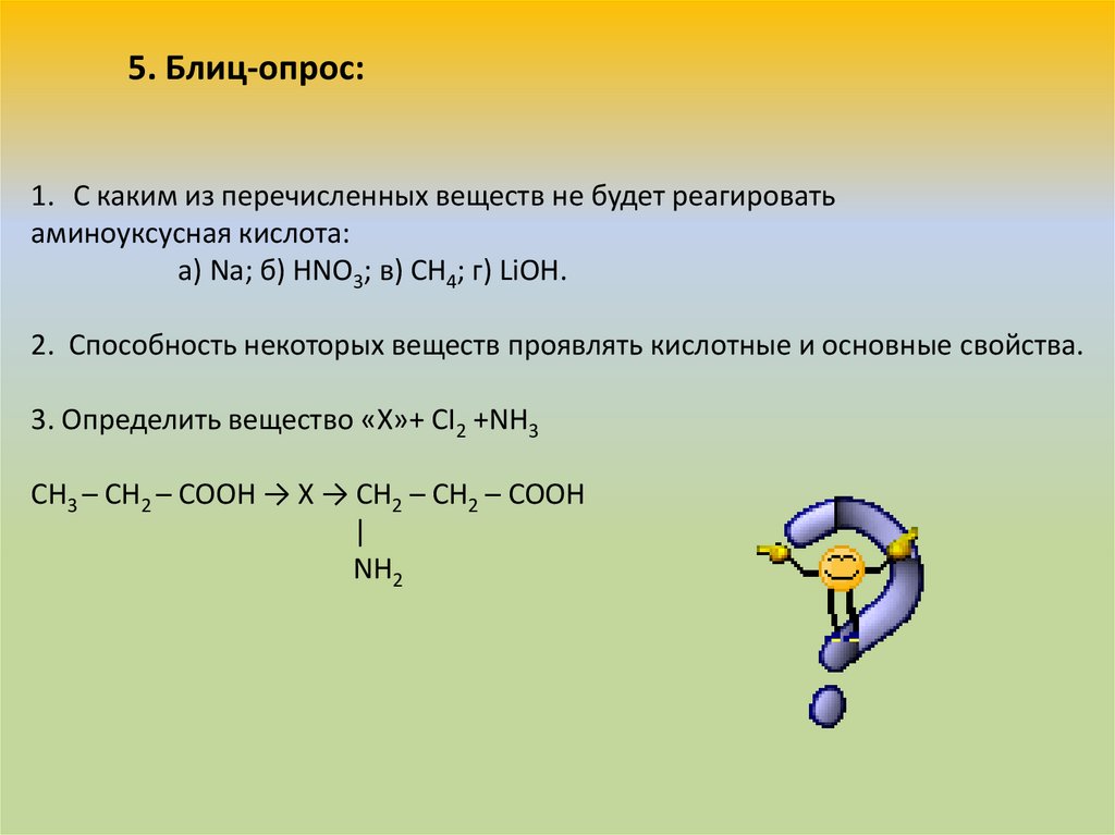 5. Блиц-опрос:1. С каким из перечисленных веществ не будет реагировать