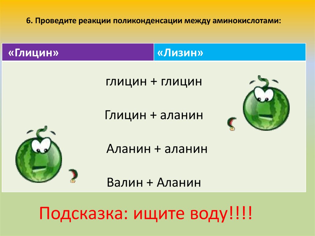 6. Проведите реакции поликонденсации между аминокислотами:«Глицин»
