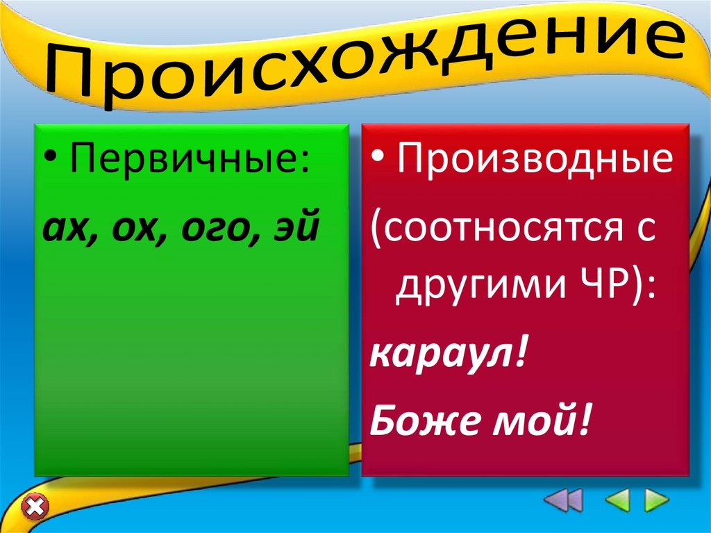• Первичные:ах, ох, ого, эй