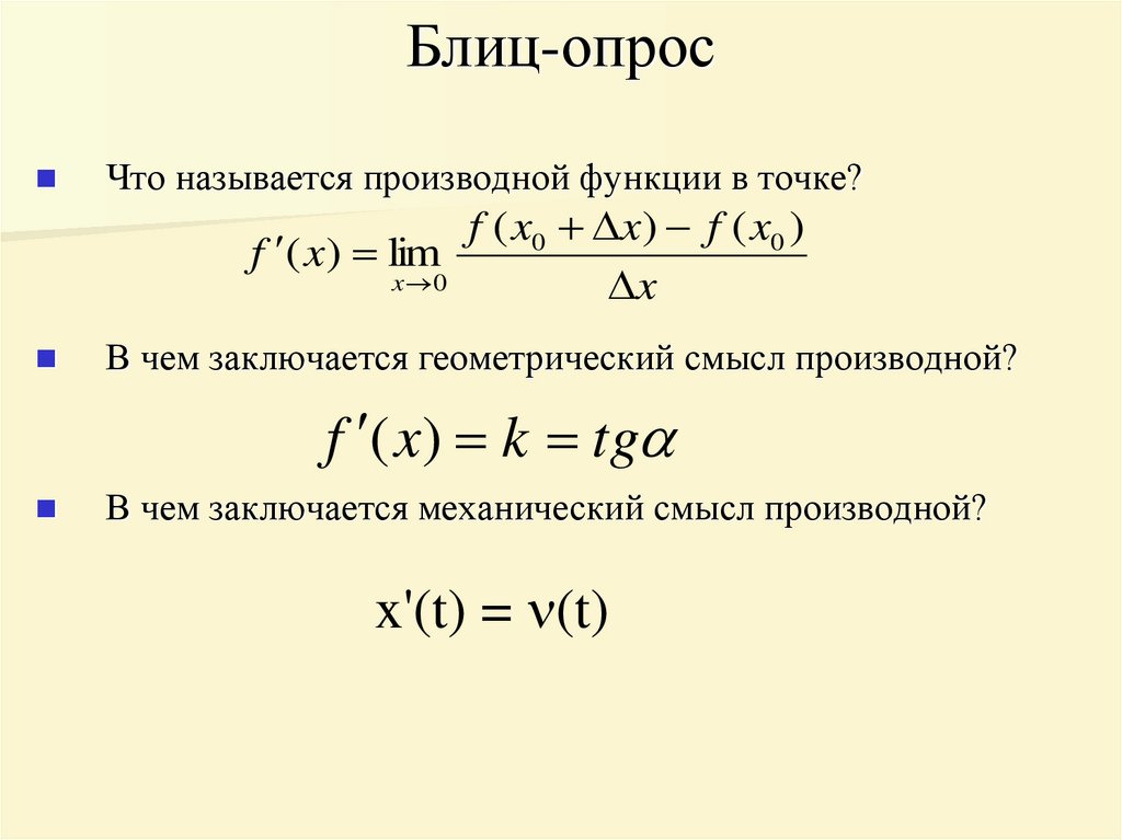 Блиц-опросЧто называется производной функции в точке?